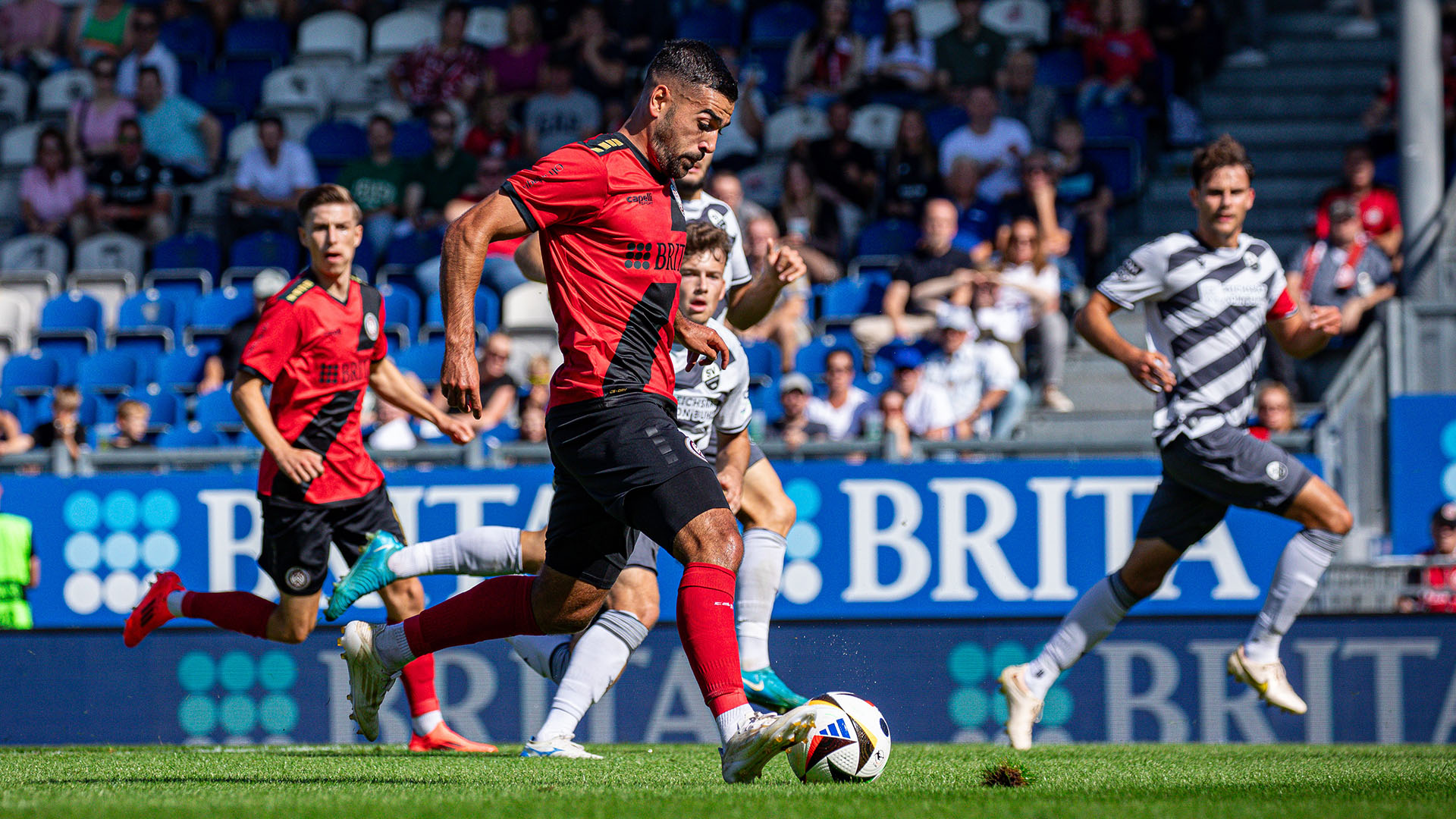 Nach einer Ecke des SVS leitet Thijmen Goppel den Tempogegenstoß ein. Über die Zwischenstation Nick Bätzner gelangt die Kugel zu Tarik Gözüsirin, dessen Abschluss im letzten Moment geblockt wird. Der Abpraller landet erneut beim zentralen Mittelfeldspieler, der mit einer Flanke Fabian Greilinger am zweiten Pfosten findet. Die Direktabnahme des Linksaußen fliegt jedoch über die Latte.