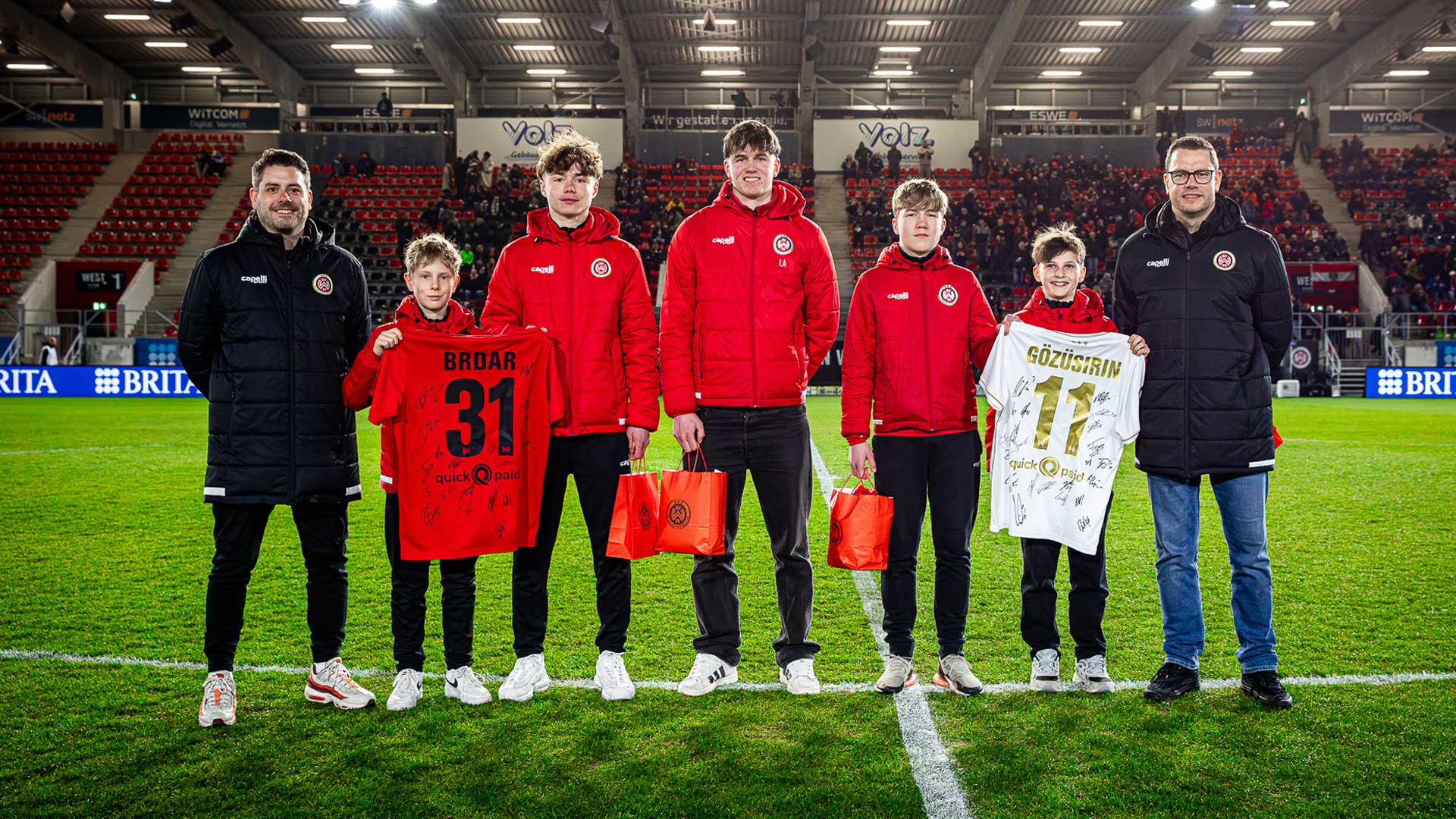 Ausgezeichnet wurden dabei Len Anders (U19), Anton Hahn (U16), Julius Donnevert (U15), Henry Alswede (U13) und Carlo Mondani (U12), die im Rahmen der Ehrung allesamt eine Präsenttüte mit rot-schwarzem Merch überreicht bekamen. Mit Anton Hahn aus dem Leistungsbereich sowie Henry Alswede aus dem Grundlagen- und Aufbaubereich erhielten die jeweils besten Schüler ihres Bereichs zudem ein von den Profis unterschriebenes Trikot.