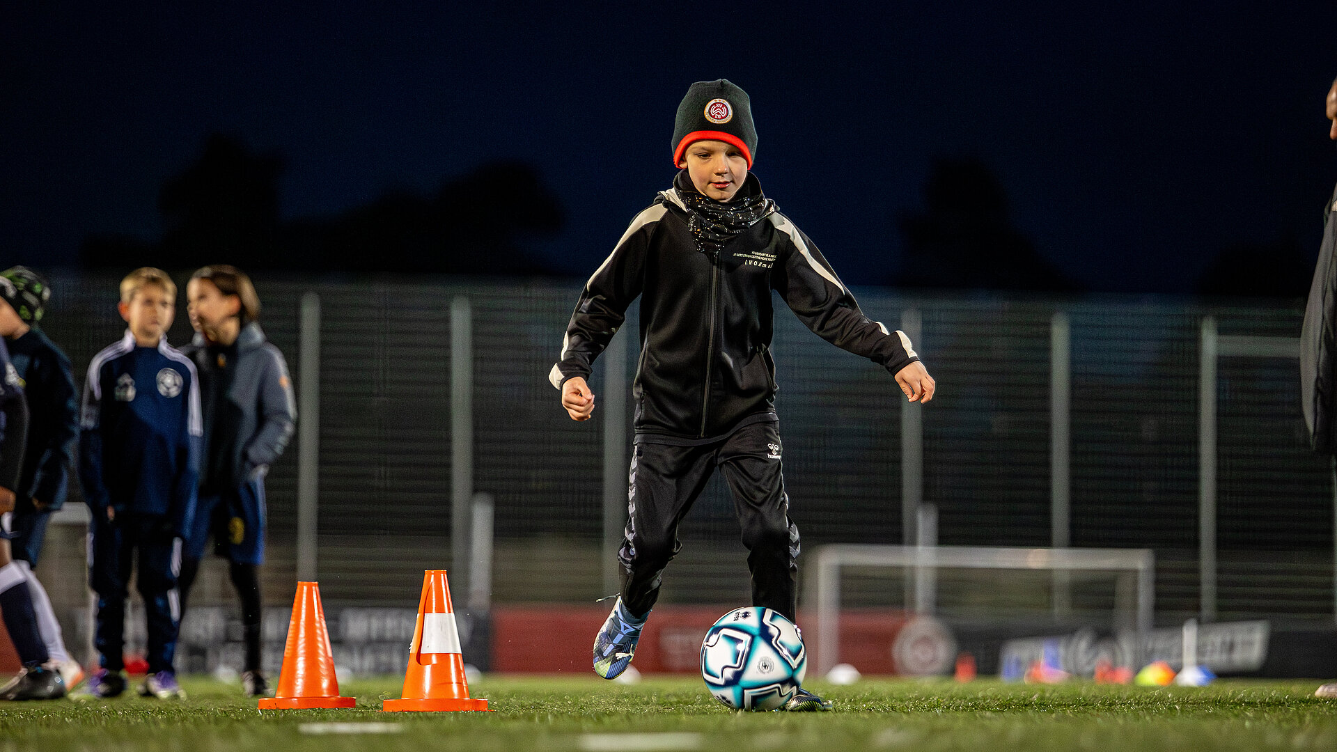 Rund 75 Nachwuchskicker des FC Burgsolms, der JSG Hünfelden, der SpVgg Igstadt und des FC Waldbrunn nahmen an der rund 90-minütigen Übungseinheit auf dem Halberg teil. Geleitet wurde das Training von zwei NLZ-Trainern der Rot-Schwarzen, unterstützt von den SVWW-Profis Gino Fechner, Jakob Lewald, Lukas Schleimer und Ole Wohlers, die jeweils einen der vier rot-schwarzen Netzwerkverein als Coach betreuten.